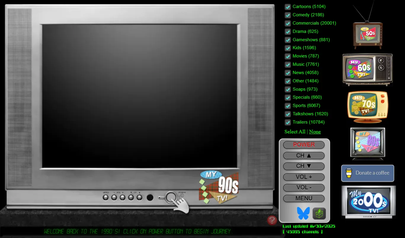 A nostalgia bomb disguised as a TV. Flip through old ads, sitcoms, news segments, and random static like it’s 1996 all over again.